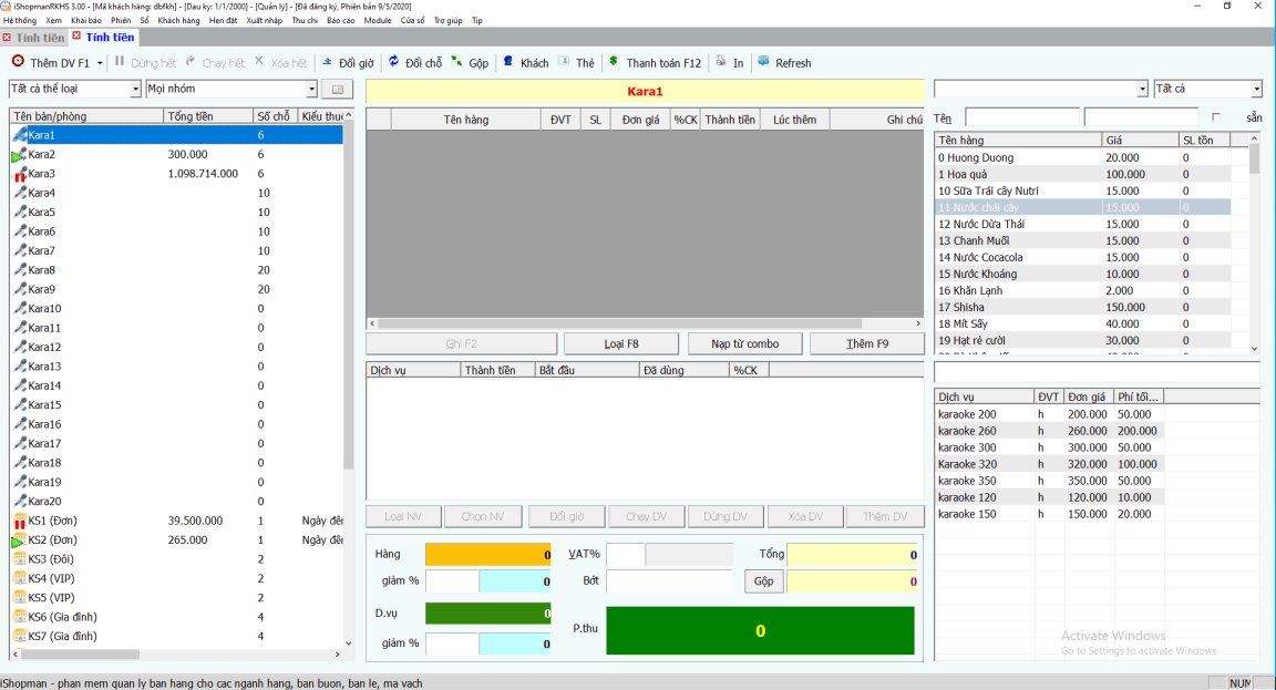 *karaoke/bi-a: 15 bàn/phòng